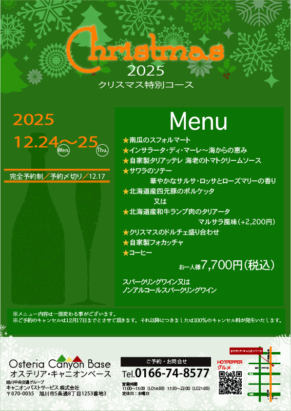 ☎︎0166-74-8577(オステリア キャニオンベース)